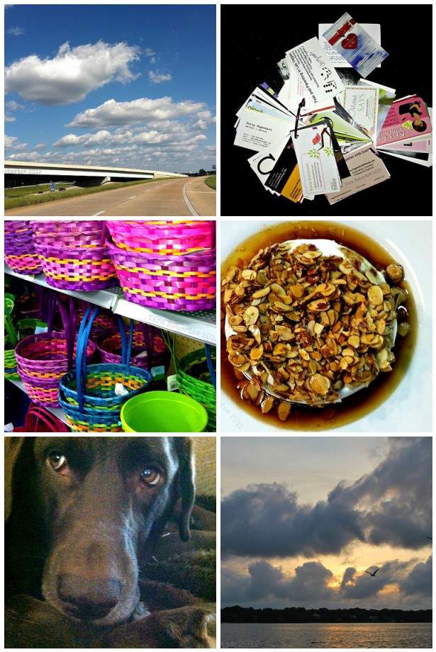 1. ontheroad, 2. blogcards, 3. easterbaskets, 4. bakedbrie, 5. needshugs, 6. lastflight