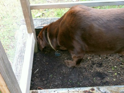 Poor Scruffy watched longingly at the window while Hershey and I dug in the dirt. I think he really wanted to play with George.