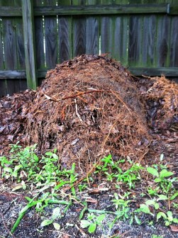 Whether it was fingerling roots from the adjacent trees, or spontaneous generation of plant life from the rotting leaves, I couldn’t simply scoop them up. Tiny roots had mingled with the leaves and twigs, meshing them together into a musty carpet of debris.