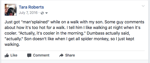 I won’t go into detail, but the crux of the conversation was that he deigned to “mansplain” something to her, something that 1) didn’t concern him, and 2) he knew nothing about.