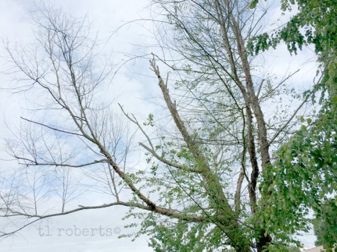 The other half of the tree is sprouting bright green leaves and is trying to fill in the blanks left by its desolate side. It is still fighting to survive. The hardy side of the tree seems to be losing ground in its battle, but it isn’t giving up yet.