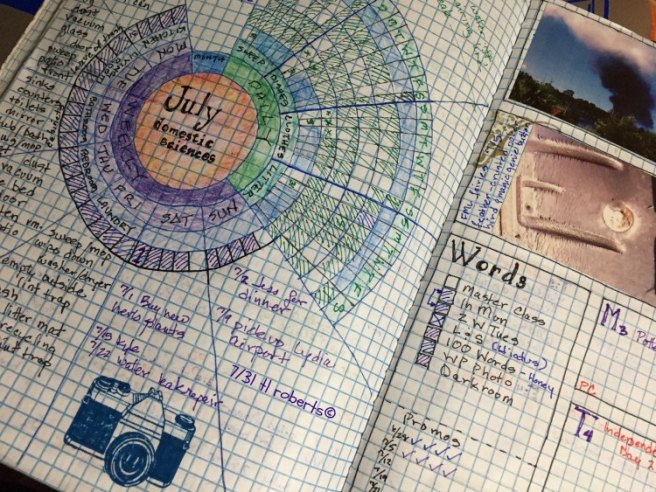 Been doing this bullet journal thing for about six months now, and am actually surprised I’ve kept up with it this long. I’ve tried journaling before and I was woefully inattentive to it, this just clicked with me. It’s gone through many variations, morphing from single page – single day, to a weekly double-page layout, to it’s current configuration of a monthly chore wheel with single-page weeklong layouts to track other tasks and events.