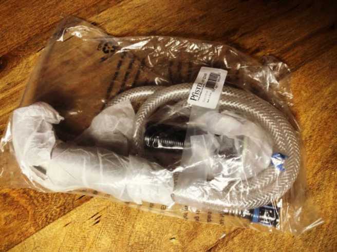 The item I found was a replacement hose for the kitchen sink sprayer. The handle was sticking and I had doused myself on a few occasions. We’ve had the new hose for sometime, but it got “misplaced.”