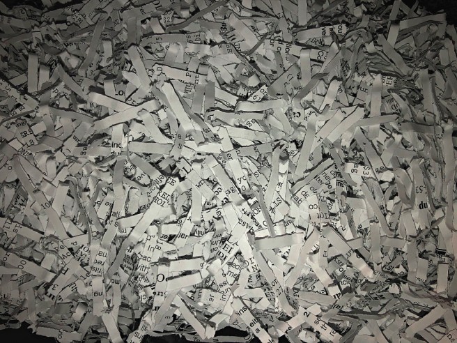 Every few years, our local library sponsors a “Shred-it Day.” You can bring all the household papers that you want destroyed free of charge. My household generates a lot of paper – bank statements, credit card bills, medical receipts, pay stubs – many, many pieces of paper.